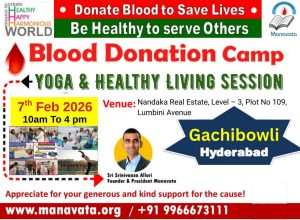 The Blood Donation and Healthy Living – Manavata Inspirational Workshop, held today in Hyderabad, was successfully conducted with great enthusiasm and community participation.