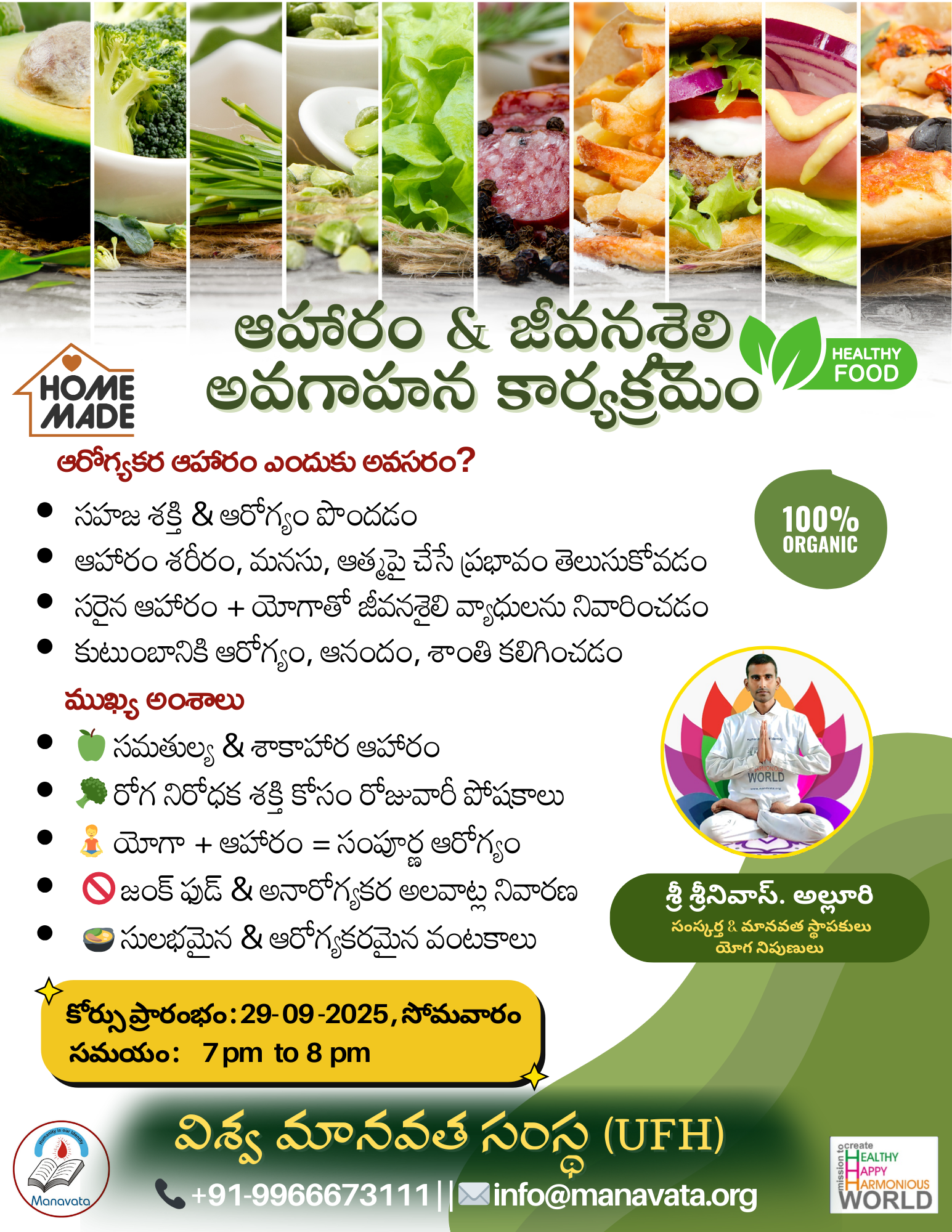 Food & Lifestyle Awareness Program Discover the importance of healthy food and lifestyle in achieving natural health, preventing diseases,…